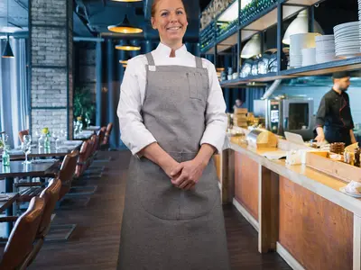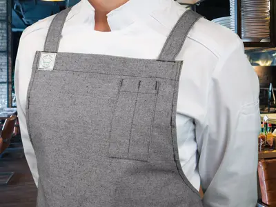 Un tablier unique éco-conçu avec un tissu 100% recyclé (incluant 60% de textiles Elis en fin de vie), ne générant aucun gaspillage de matière lors de la confection.